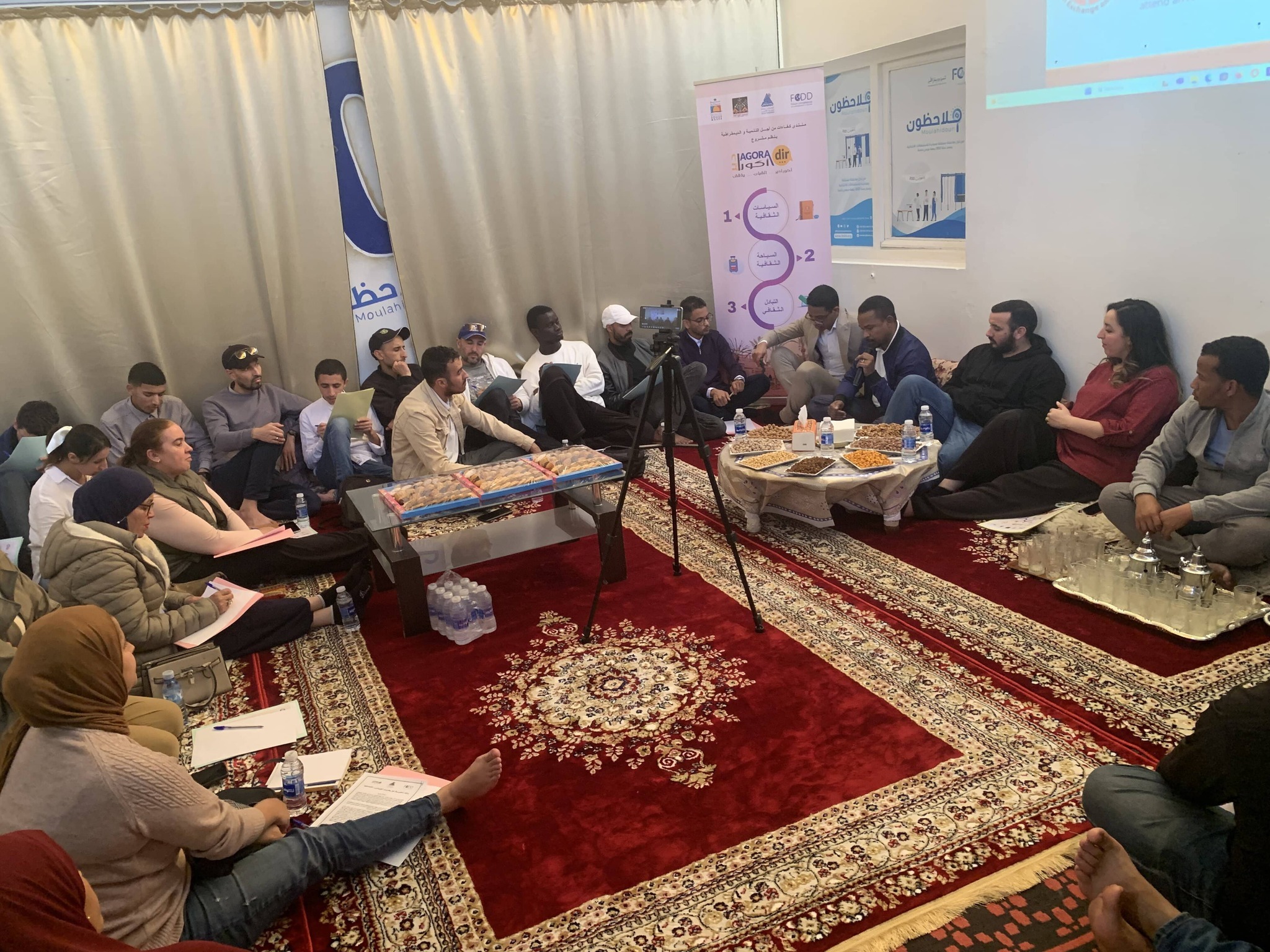 The “AGORADIR ” project is a unique initiative in the city of Agadir, aiming to reshape the space of public debate by moving discussions from closed halls to open public spaces. This shift grants young people greater freedom of expression and autonomy of thought. Through the organization of thematic intellectual and dialogic circles, the project seeks to offer youth the opportunity to engage and contribute actively to current societal issues.